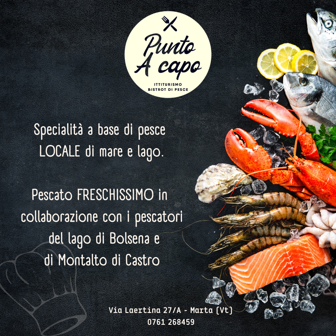 Welcome to Punto a Capo Bistrot di pesce, a hidden gem nestled along the tranquil shores of Lake Bolsena in Marta, Italy. This charming bistro, owned by a knowledgeable fisherman, is celebrated for its fresh, high-quality seafood and creatively crafted pasta dishes. Patrons rave about the fixed menu, offering exquisite highlights like succulent prawn salad and rich paccheri with anchovy sauce, prompting many to savor every last drop with bread.